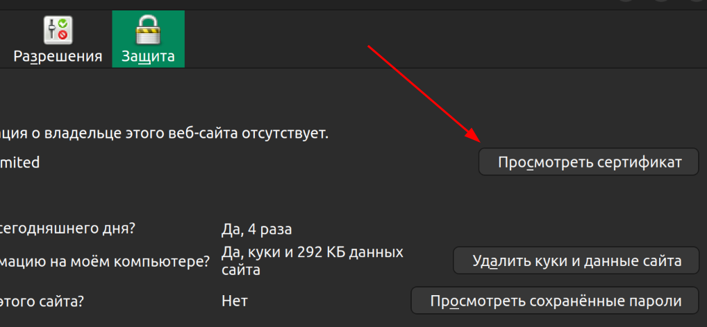 Откроется отдельное окно с подробной информацией о защите вашего сайта. Нас интересует кнопка «Посмотреть сертификат».