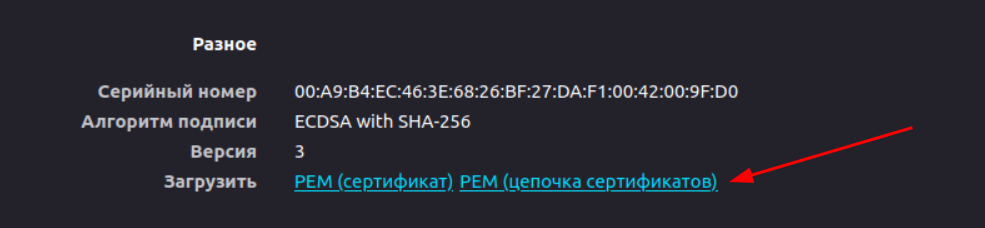 После нажатия на кнопку попадаем на вкладку с детальной информацией о сертификате. Листаем вниз до секции «Разное»