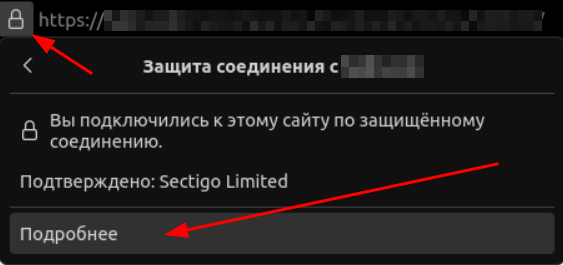 Например в firefox необходимо нажать на «замок» слева от доменного имени, затем выбрать пункт «Защищенное соединение», в нем — «Подробнее».
