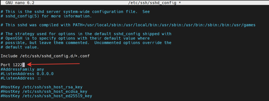 Определившись с номером порта, открываем конфиг демона ssh, выполнив команду: